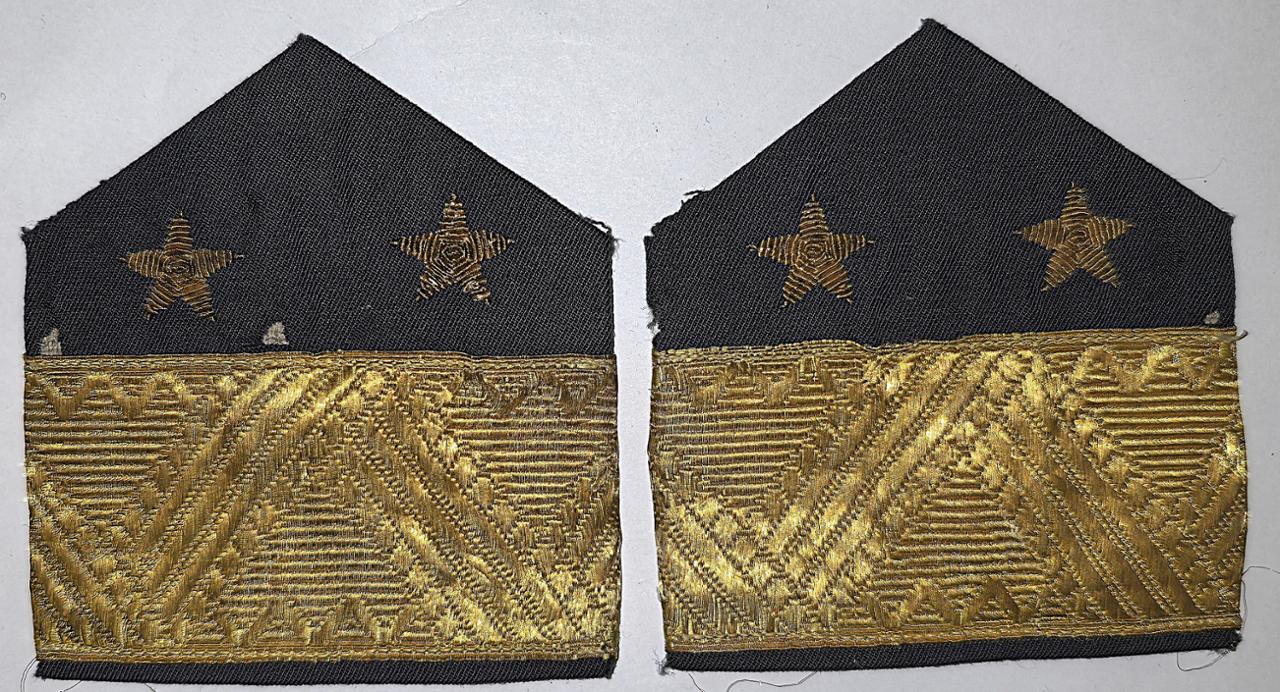 Нарукавные знаки представляли собой пятиугольники основного сукна на жёсткой основе, нашивавшиеся на оба рукава пиджака или пальто остриём вверх. В горизонтальной части пятиугольника размещались золочёные галуны — фигурного генеральского шитья. В верхней части пятиугольника размещались шитые звезды — от одной до четырёх.