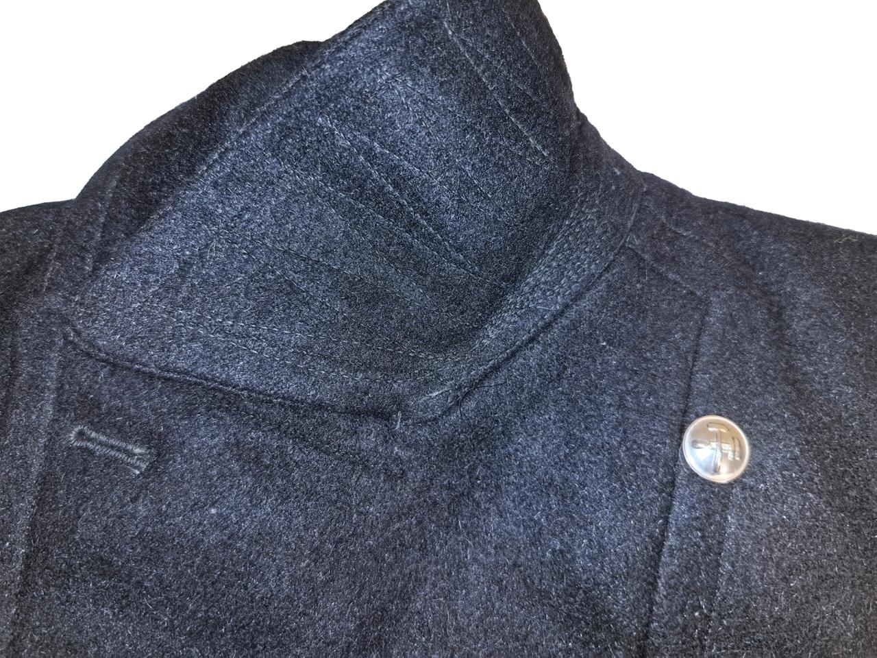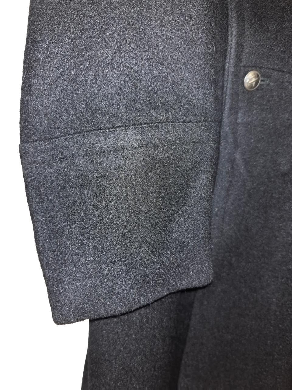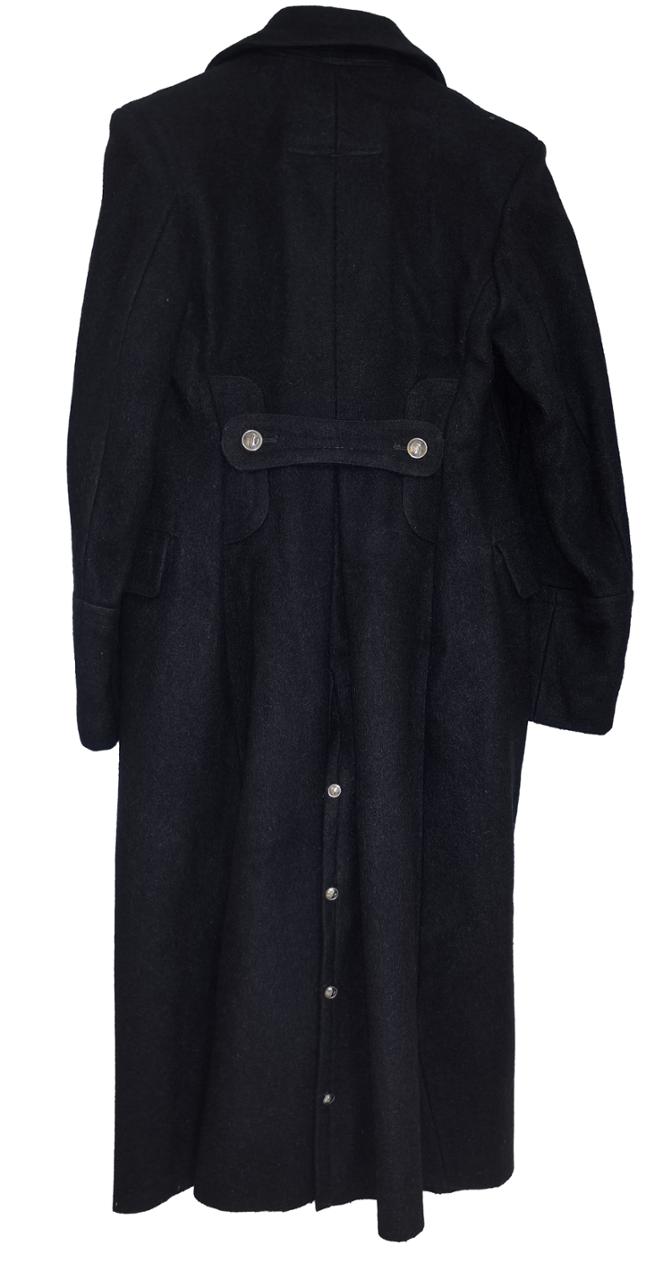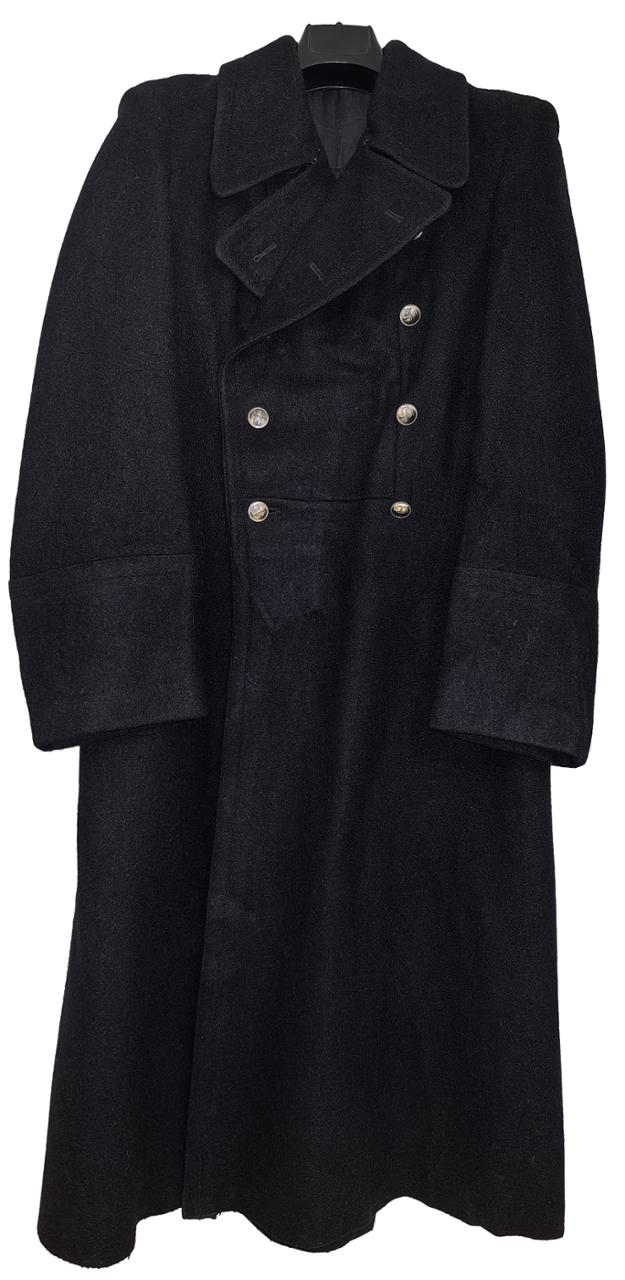 Шинель двубортная, с отрезными дольниками на груди, с двумя рядами форменных посеребрённых пуговиц, по 6 пуговиц на борту для высшего начальствующего состава и по 5 пуговиц для остального начальствующего состава.