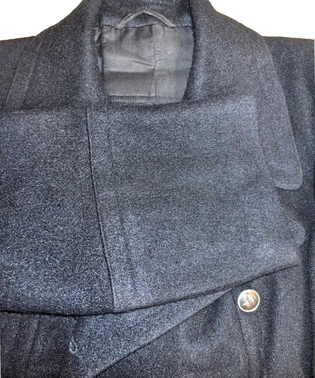 Рукава шинели двухшовные с пристроченными обшлагами. Два кармана прямых, поперечных, прорезных, прикрытых клапанами, и один грудовой карман в подкладке с левой стороны.