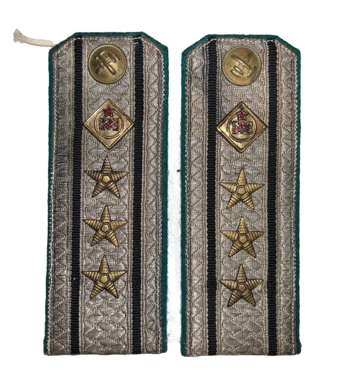 На поле погона, вдоль центральной линии, прикрепляются знаки различия — металлические пятиконечные золочёные звёздочки, размером между вершинами противолежащих. лучей — 16 мм.