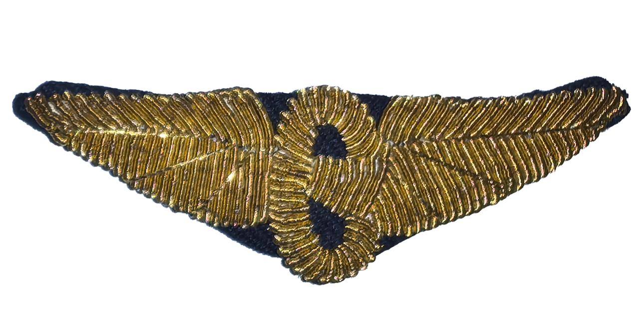 Эмблема железнодорожного транспорта представляет собой эллипсообразное колесо с крыльями. Размер нагрудной эмблемы: габариты колеса -23Х13 мм, размах крыльев -70 мм. Эмблема для лиц высшего и старшего начальствующего состава вышивается золотистыми нитями. Для среднего, младшего начальствующего и рядового составов - может быть изготовлена из других материалов золотистого цвета.