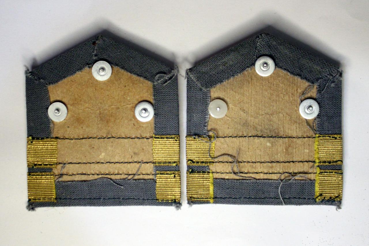 Нарукавные знаки представляли собой пятиугольники основного сукна на жёсткой основе, нашивавшиеся на оба рукава пиджака или пальто остриём вверх. В горизонтальной части пятиугольника размещался двойной простой галун. В верхней части пятиугольника размещались звезды металлические золотистого цвета — от одной до четырёх.