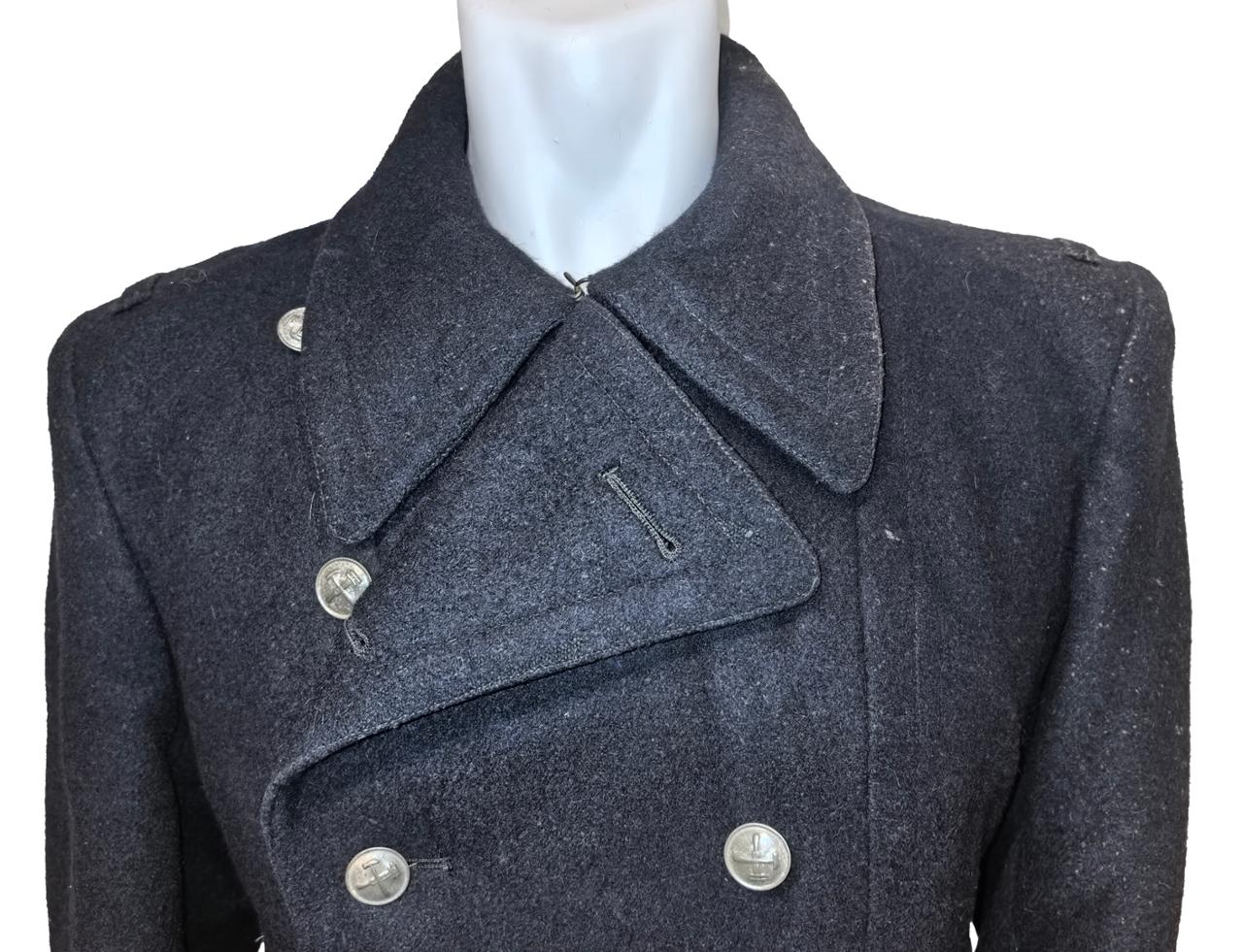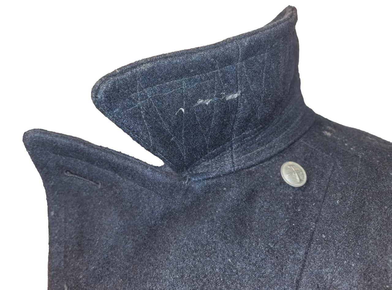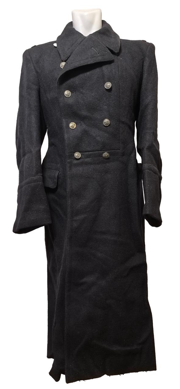 Шинель двубортная, с отрезными дольниками на груди, с двумя рядами форменных посеребрённых пуговиц, по 6 пуговиц на борту для высшего начальствующего состава и по 5 пуговиц для остального начальствующего состава.