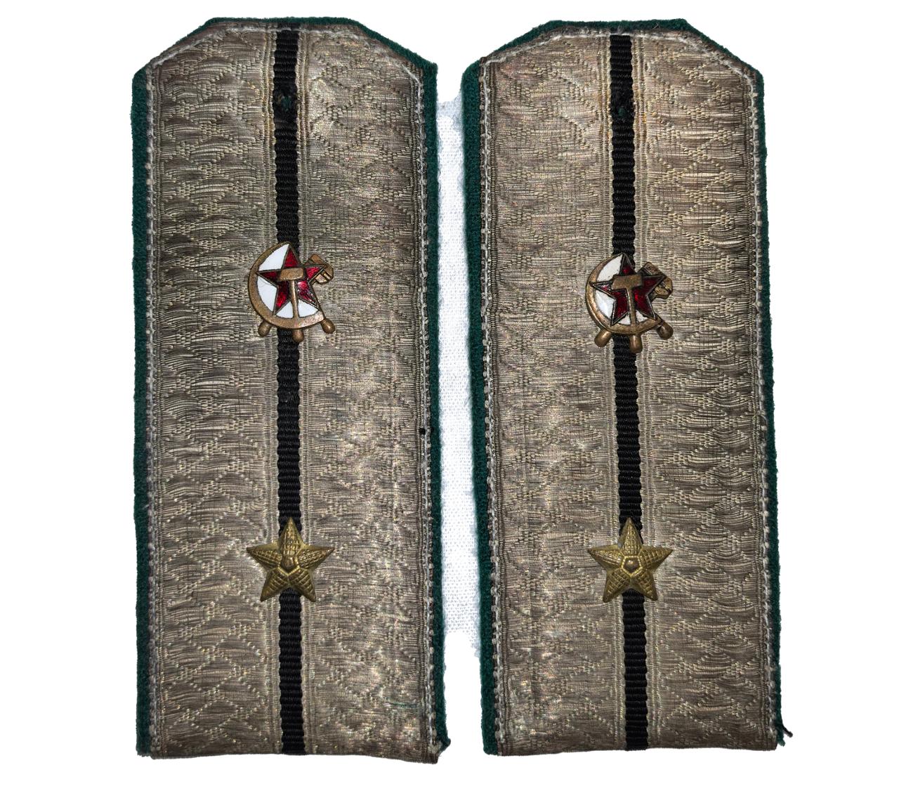 На поле погона, вдоль центральной линии, прикрепляются знаки различия — металлические пятиконечные золочёные звёздочки, размером между вершинами противолежащих. лучей — 16 мм.