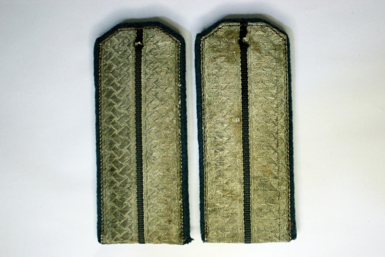 Погон высшего, старшего и среднего начальствующего состава представляет собой вытянутый шестиугольник с параллельными длинными сторонами, нижний конец которого прямоугольный, а верхний заканчивается срезанным тупым углом, со стороной среза, параллельной нижнему краю.