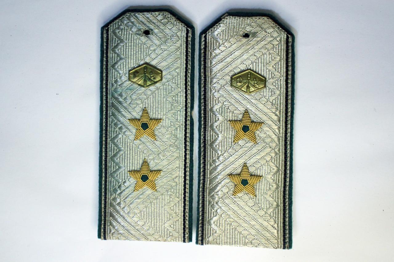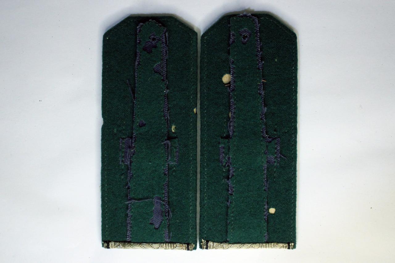 Изготавливались из серебряного галуна особого переплетения на суконном подбое. Параллельно канту вдоль погона имеется по 2 черных полоски, шириной по 0,2 см. каждая, отделяемая одна от другой серебряной полоской такой же ширины. Одна из полосок вплотную прилегает к канту.