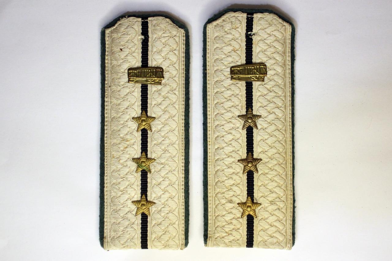 На поле погона, вдоль центральной линии, прикрепляются знаки различия — металлические пятиконечные золочёные звёздочки, размером между вершинами противолежащих. лучей — 16 мм.