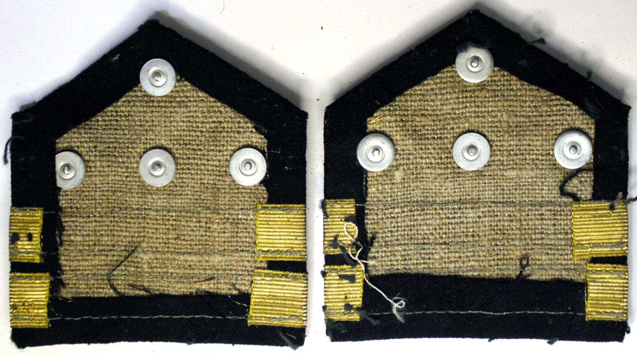 Нарукавные знаки представляли собой пятиугольники основного сукна на жёсткой основе, нашивавшиеся на оба рукава пиджака или пальто остриём вверх. В горизонтальной части пятиугольника размещался двойной простой галун. В верхней части пятиугольника размещались звезды металлические золотистого цвета — от одной до четырёх.