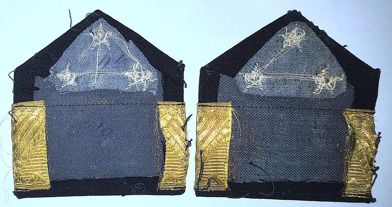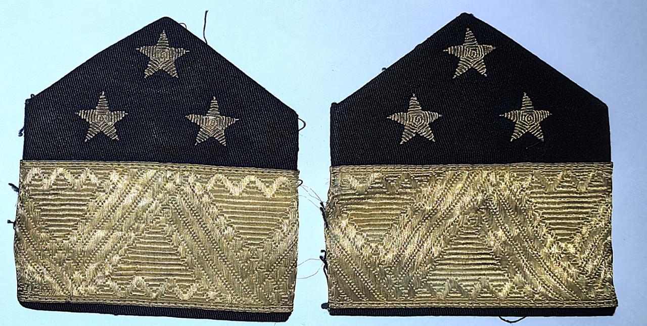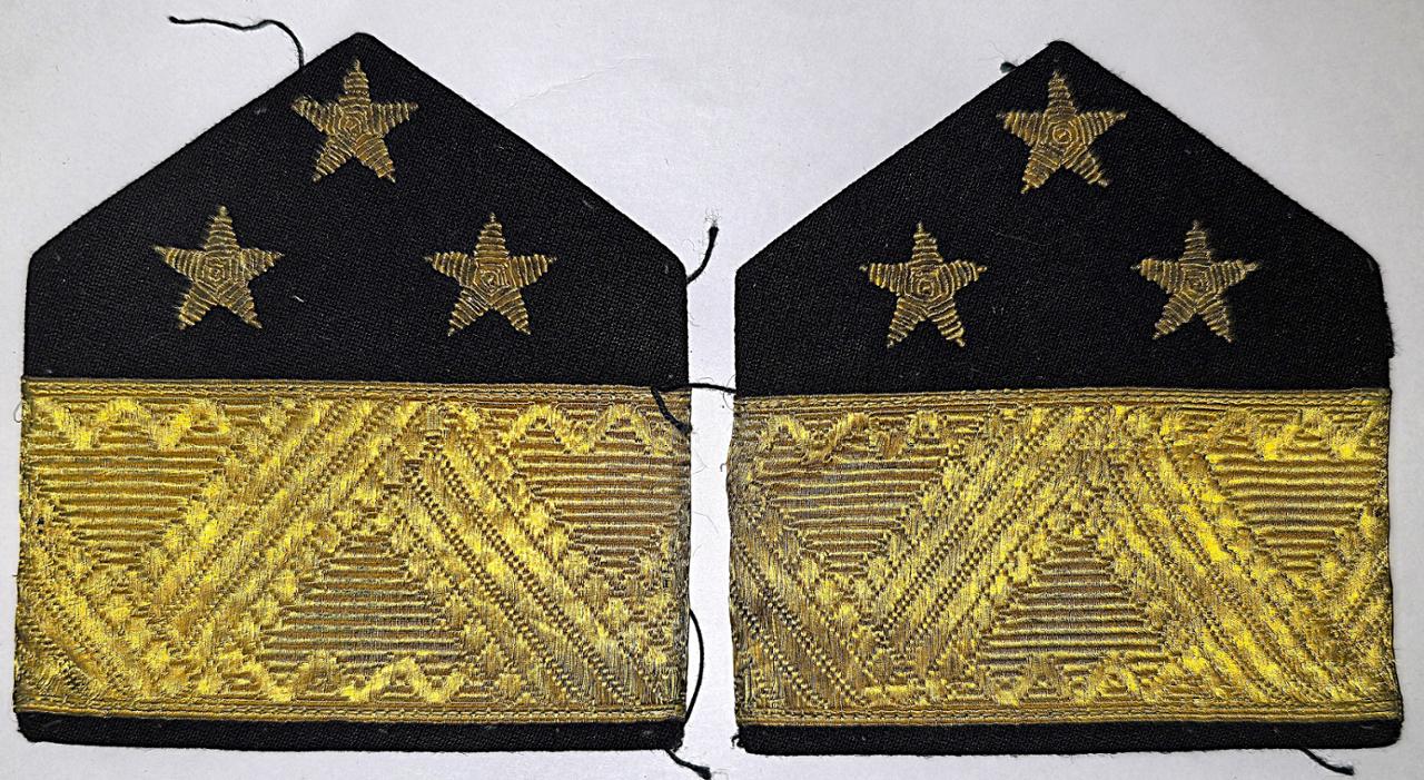 Нарукавные знаки представляли собой пятиугольники основного сукна на жёсткой основе, нашивавшиеся на оба рукава пиджака или пальто остриём вверх. В горизонтальной части пятиугольника размещались золочёные галуны — фигурного генеральского шитья. В верхней части пятиугольника размещались шитые звезды — от одной до четырёх.