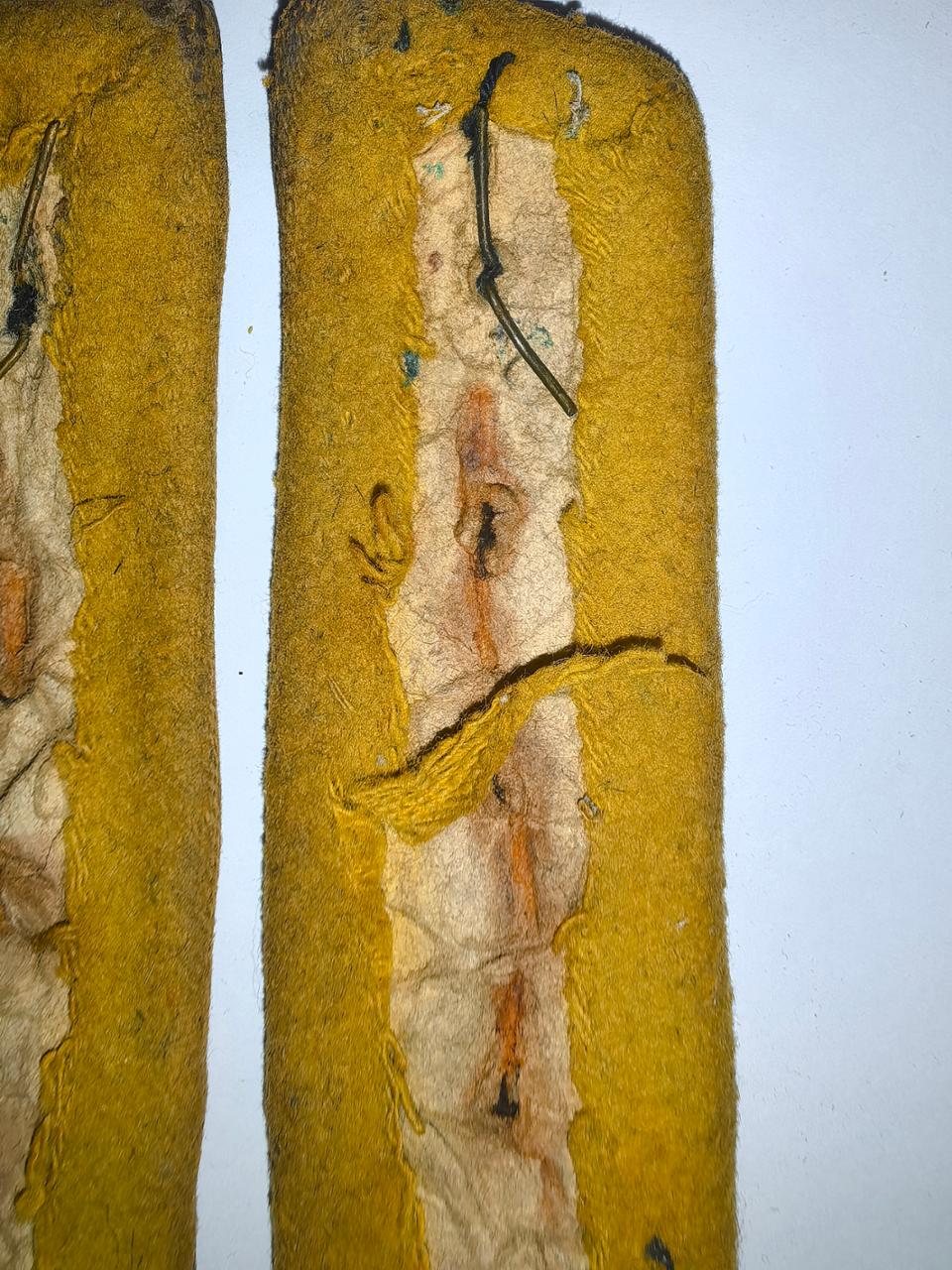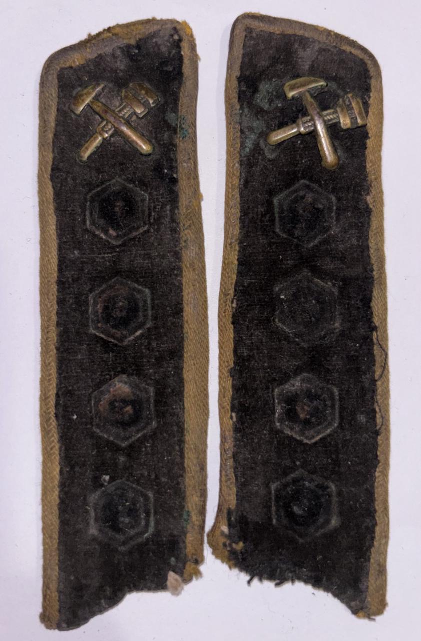 Петлицы телеграфной службы, старшего начальствующего состава. На петлицах видны следы от установки 4 шестиугольников.