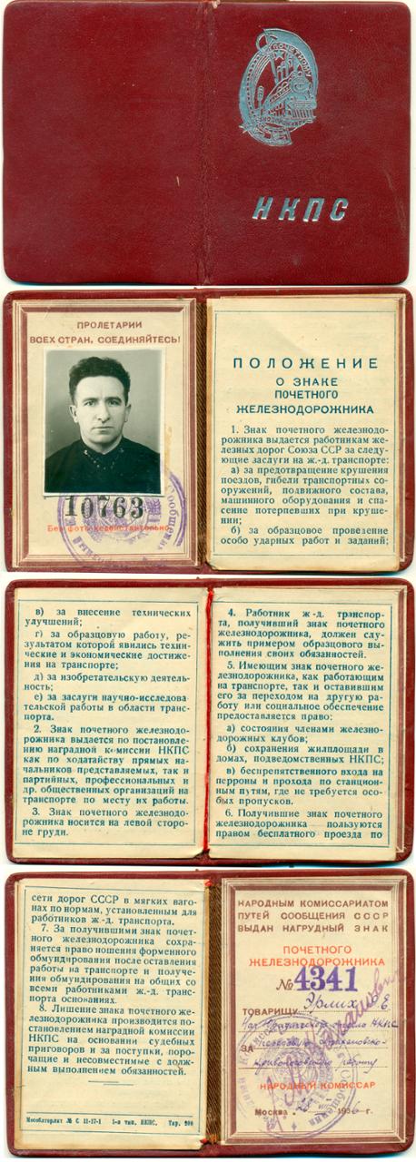 Удостоверение к знаку Почетного железнодорожника