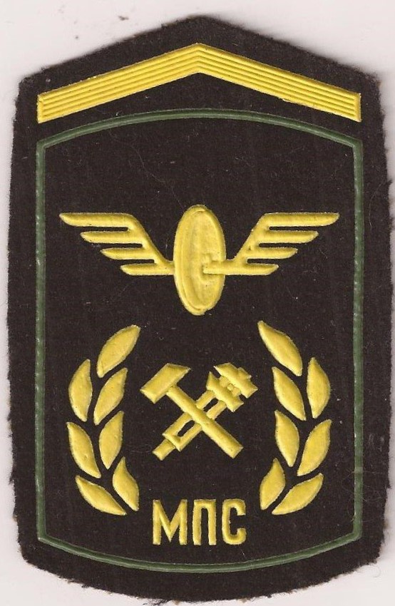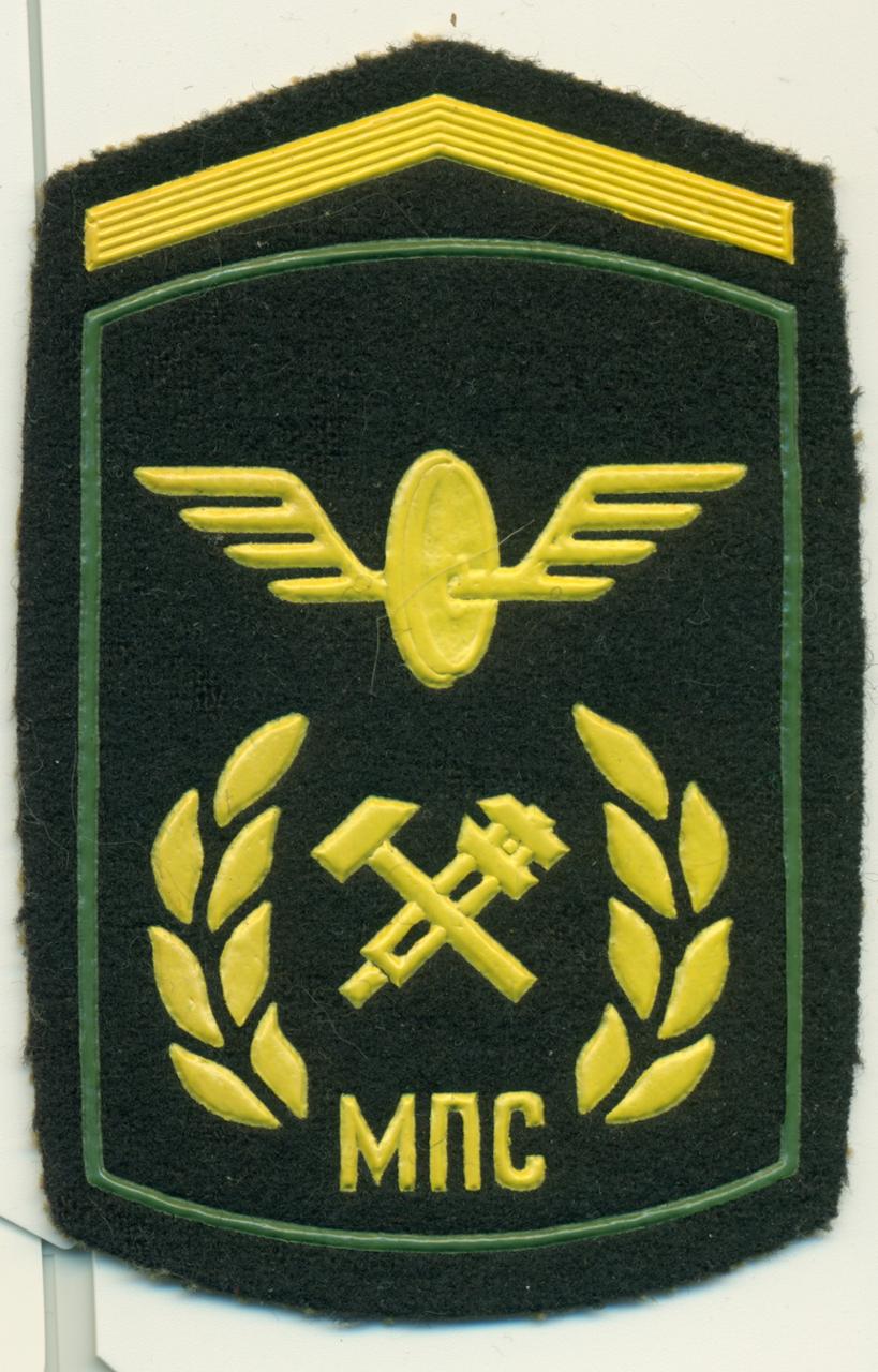 На пятиугольнике в окантовке зеленого цвета находились у студентов подведомственных высших учебных заведений – желтый технический знак в венке; над венком эмблема железнодорожного транспорта и в нижней части венка надпись «МПС».