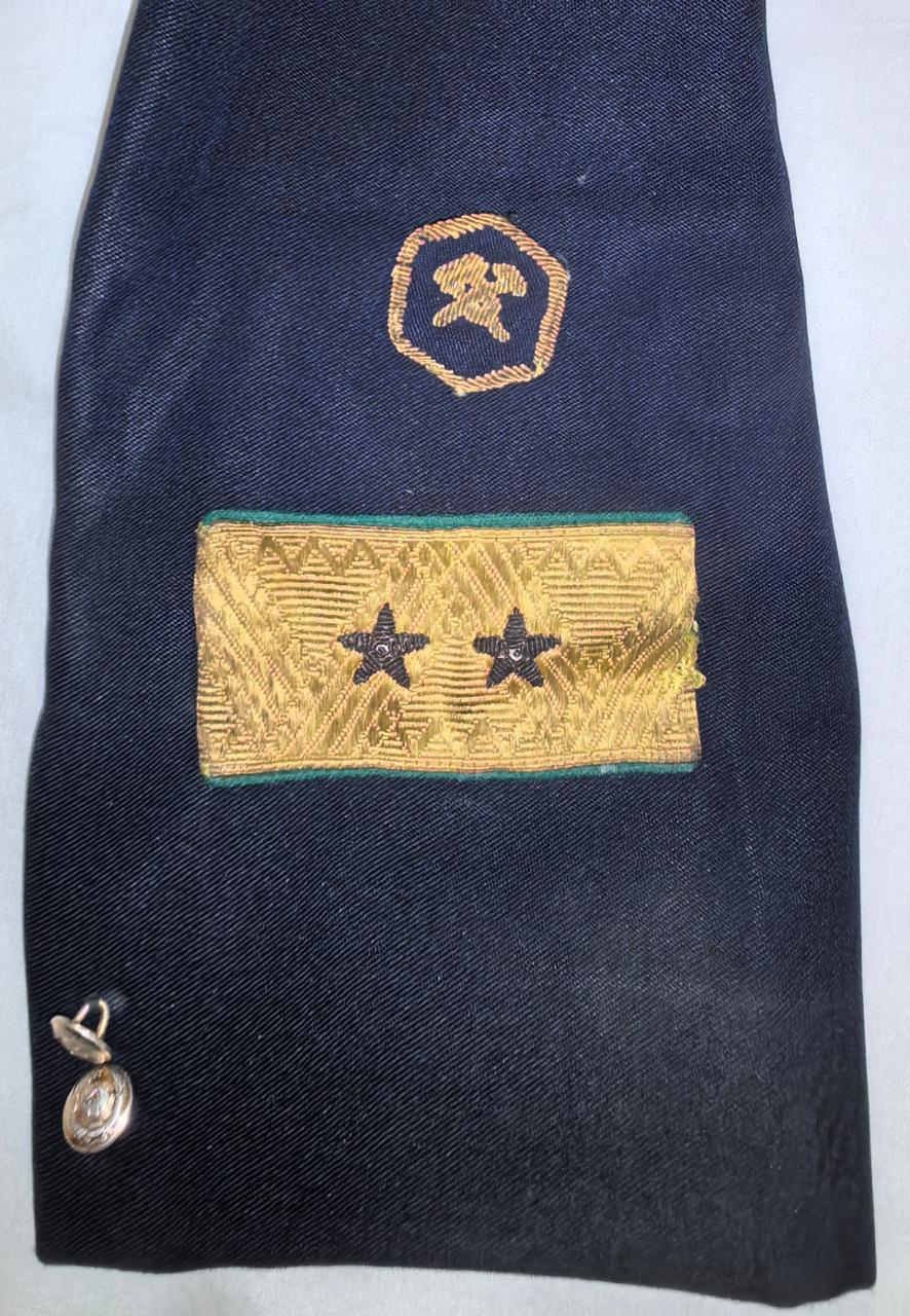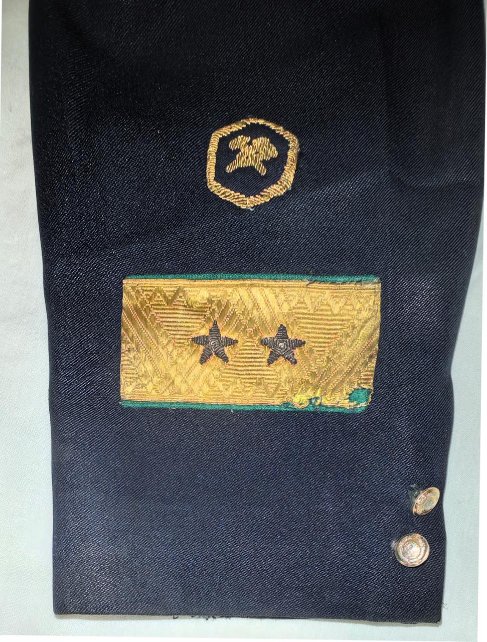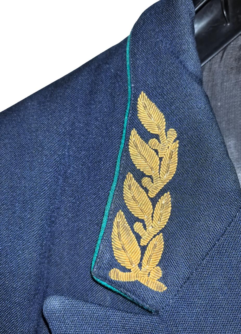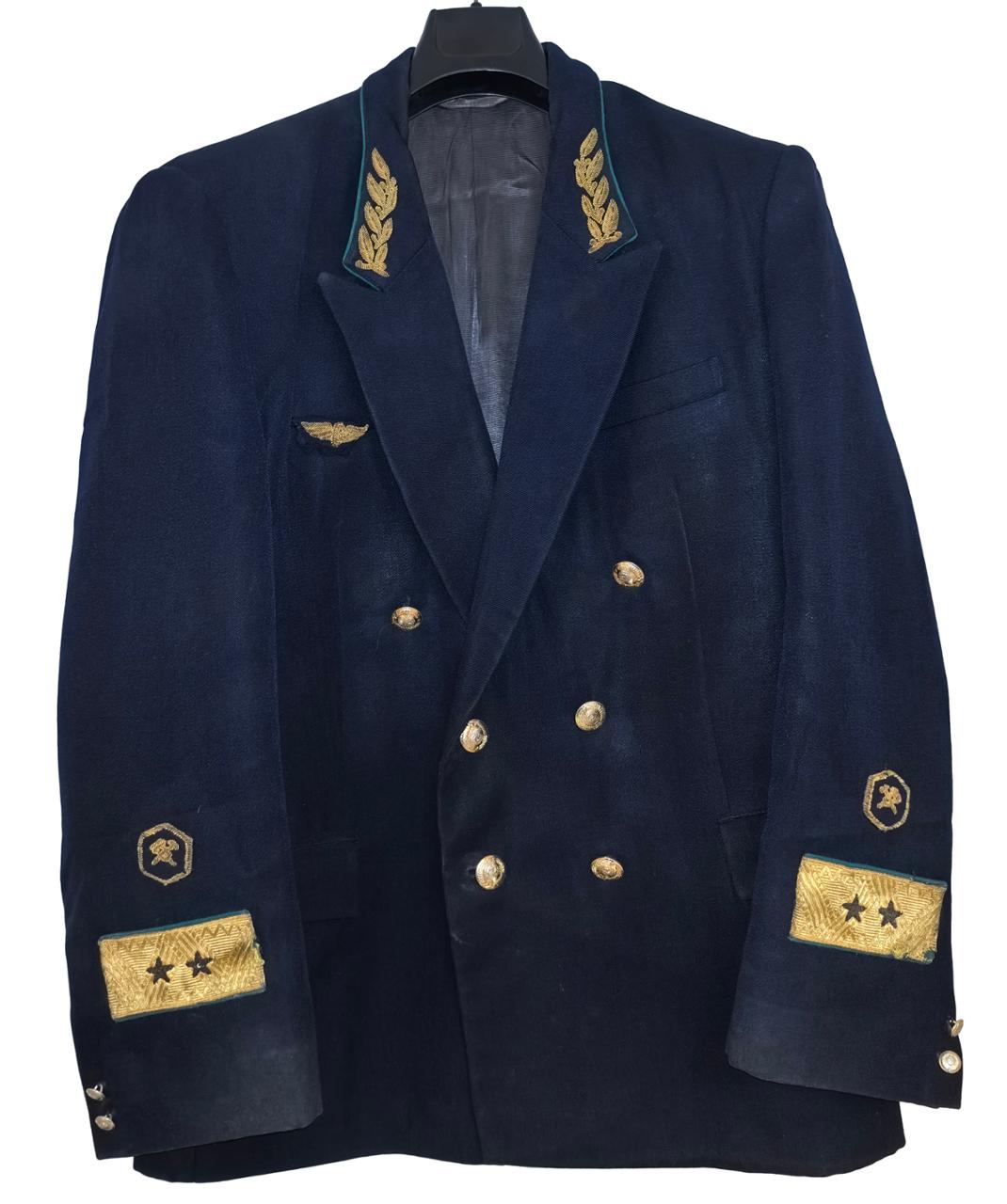 Двубортный, синий зимний пиджак высшего начальствующего состава, на трёх гербовых пуговицах, обшлаг с двумя малых гербовыми пуговицами. На пиджаке располагались прорезной нагрудный карман слева и прорезные боковые карманы с клапанами, на воротнике пиджака полагался зелёный кант и специальное шитье золотой канители в виде 4-х дубовых листьев.