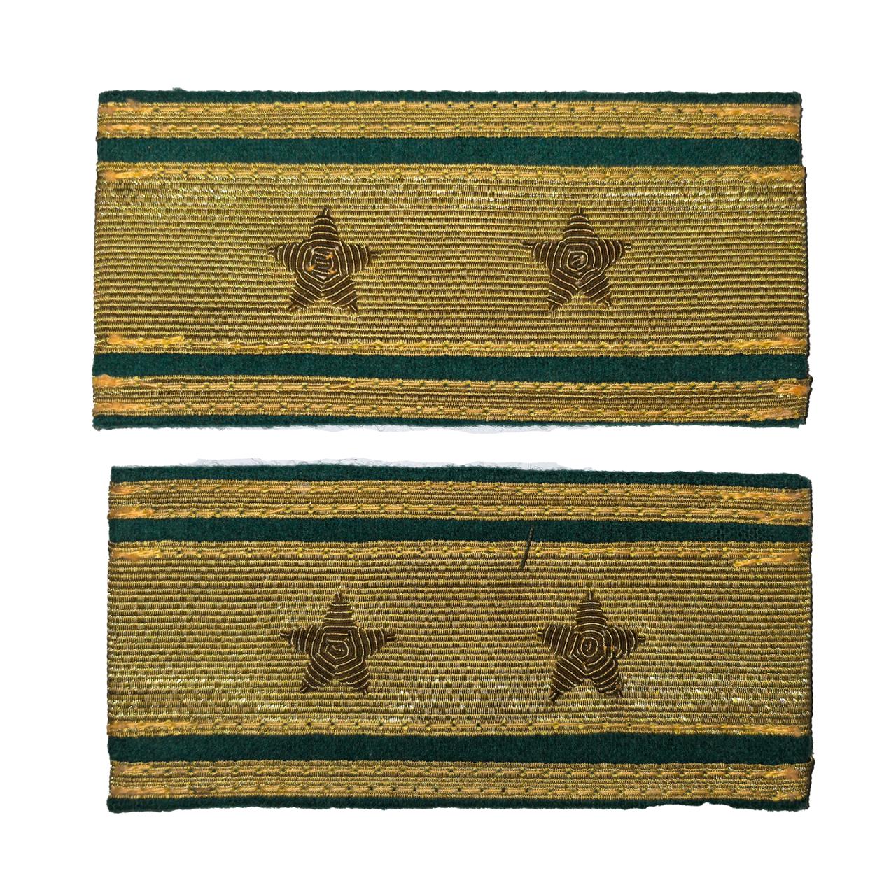 Золотистый металлизированный галун на суконном подбое с шитыми канителью звездами